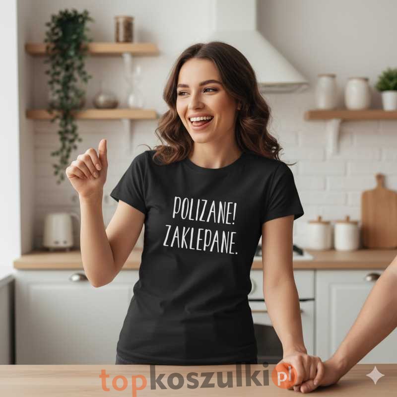 Oświadcz się z humorem – Koszulka Damska "POLIZANE! ZAKLEPANE."