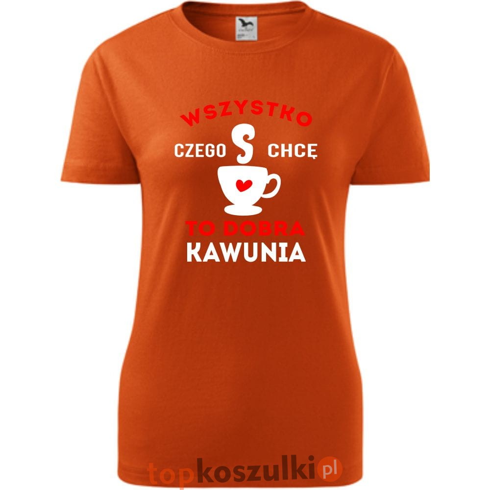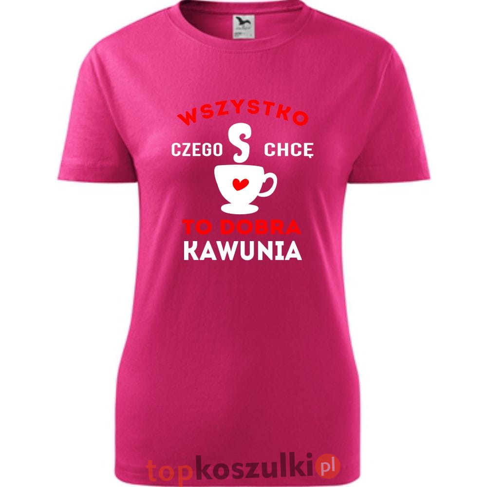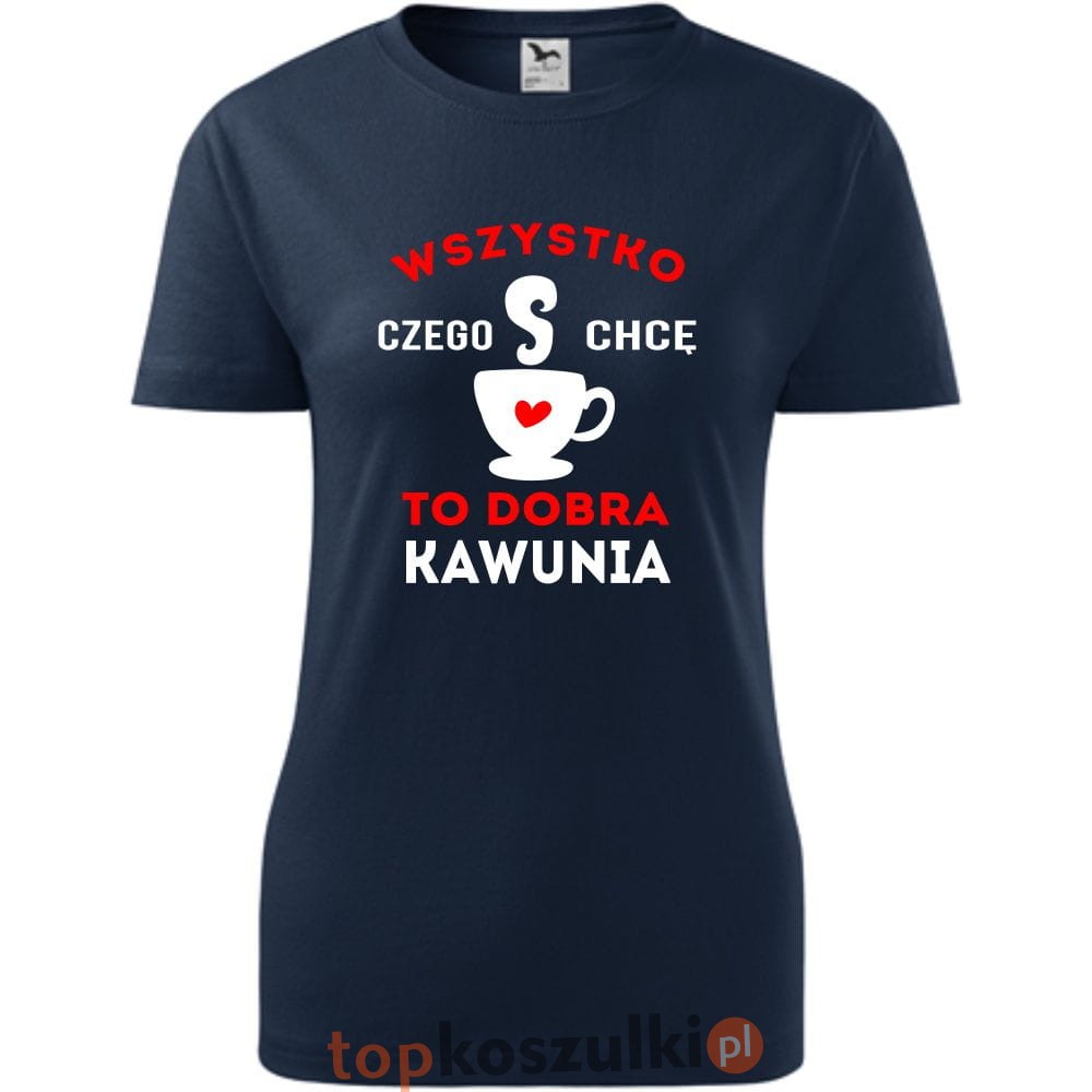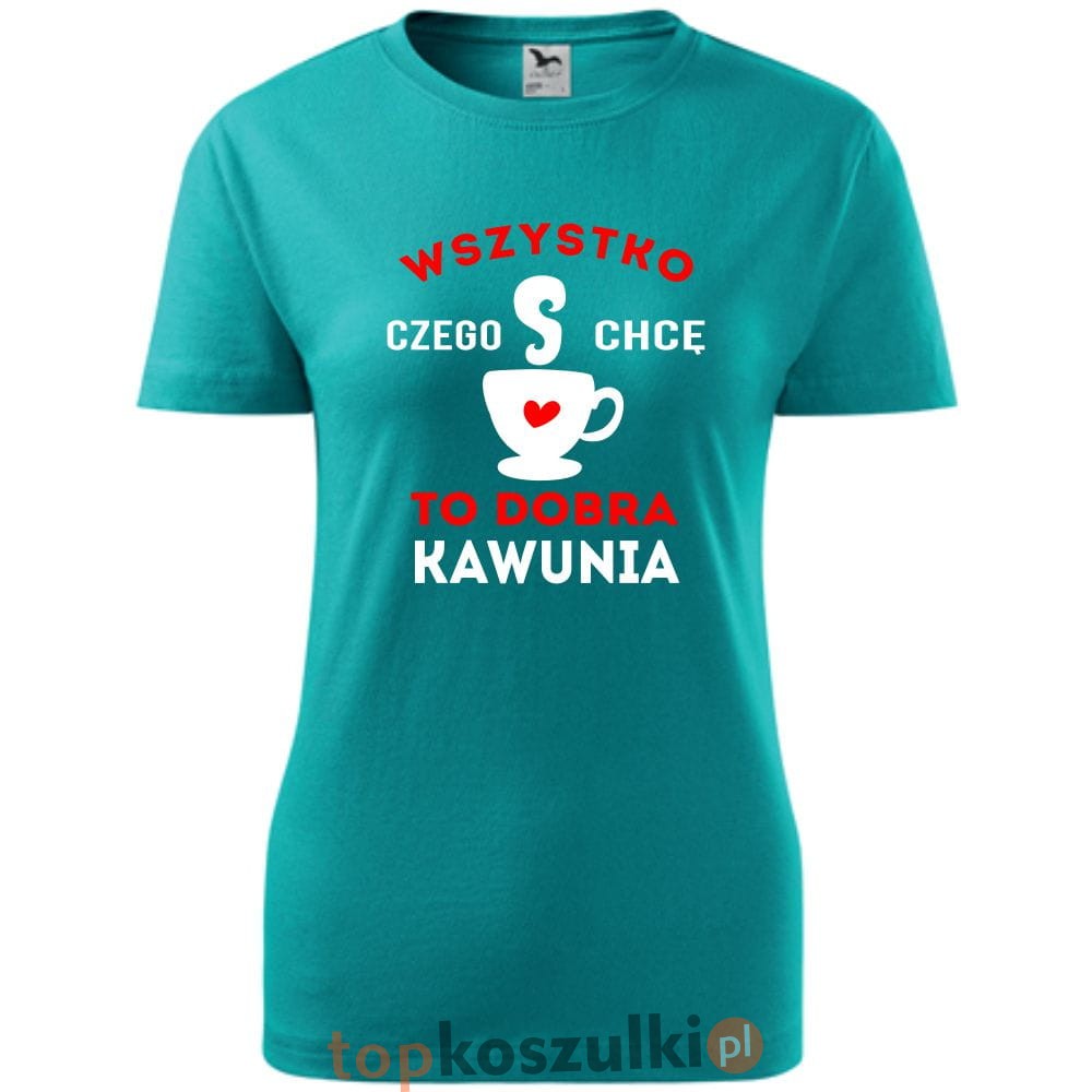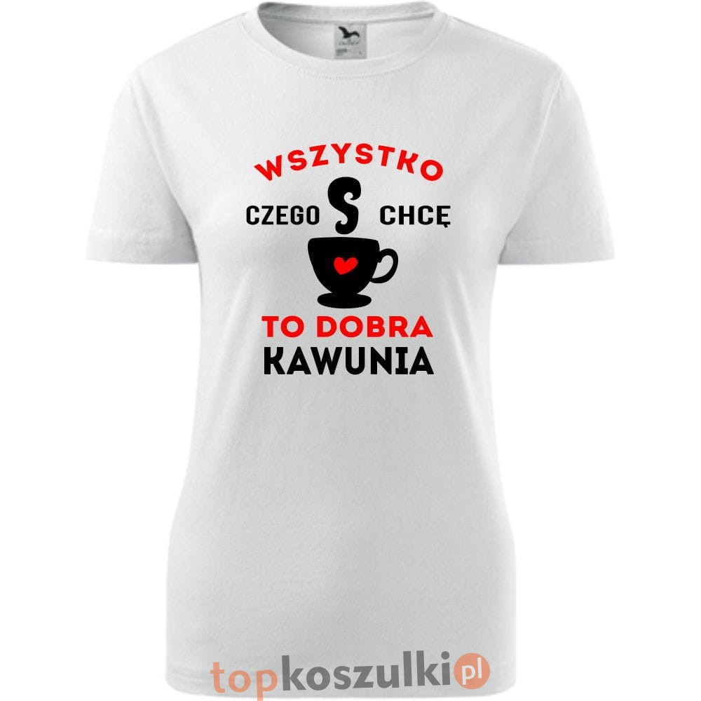 damska koszulka taliowana - wszystko czego chcę to dobra kawunia