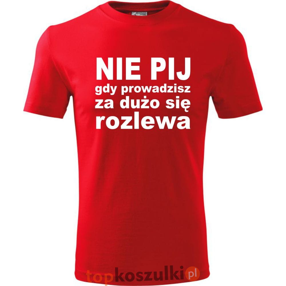 Męska koszulka - Nie pij gdy prowadzisz za dużo się rozlewa