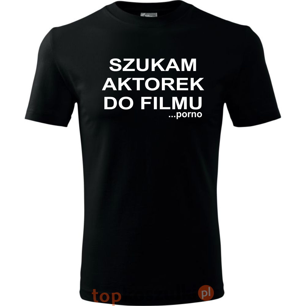 Koszulka z zabawnym nadrukiem "Szukam aktorek do filmu... porno"