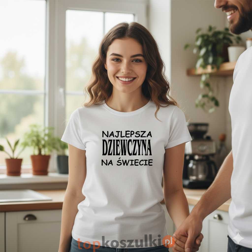 Wzruszający i Wyraźny Nadruk: Prosty, ale potężny komunikat "NAJLEPSZA DZIEWCZYNA NA ŚWIECIE" to szczery hołd dla ukochanej. Nadruk jest wyrazisty i trwały, co sprawia, że koszulka będzie pamiątką na długie lata.