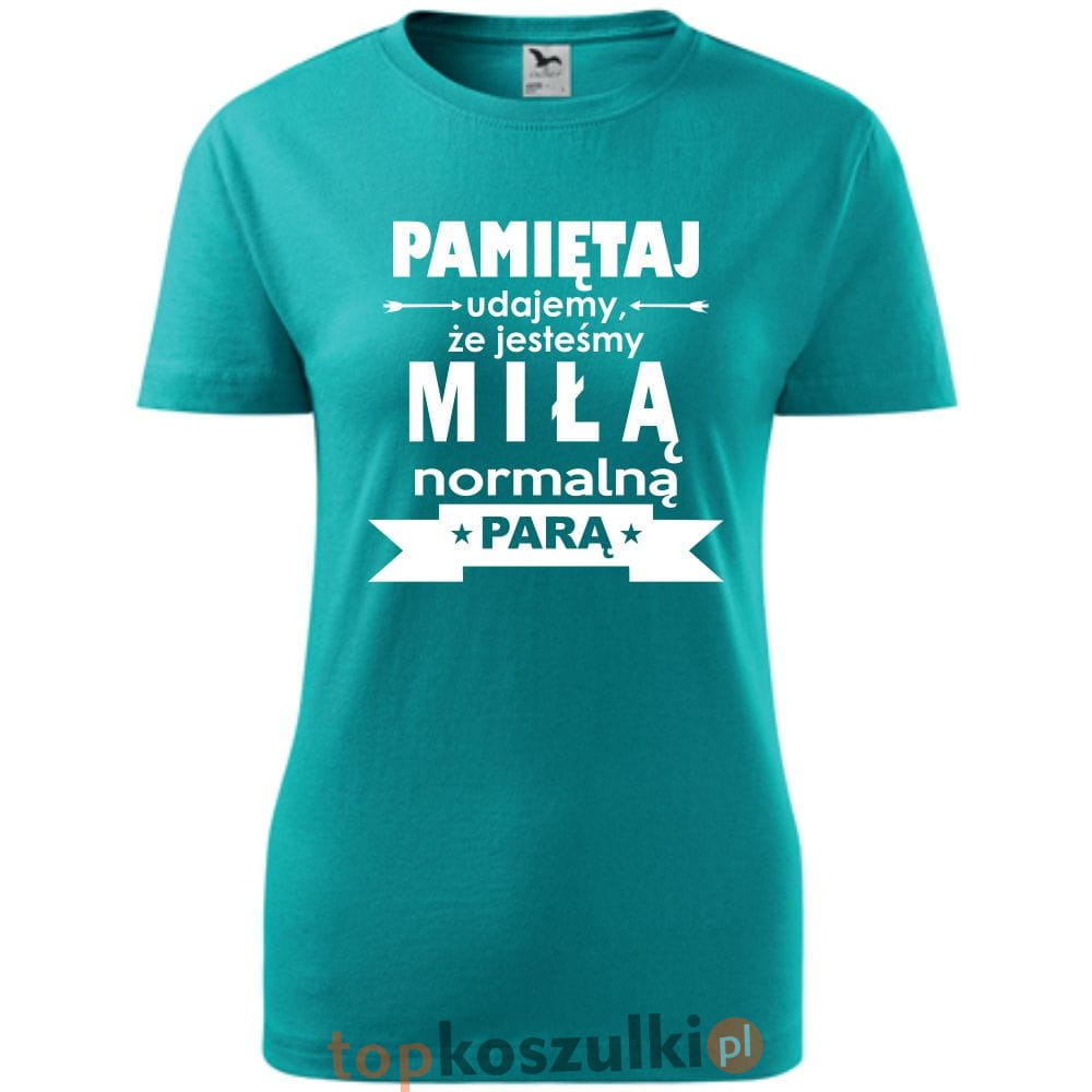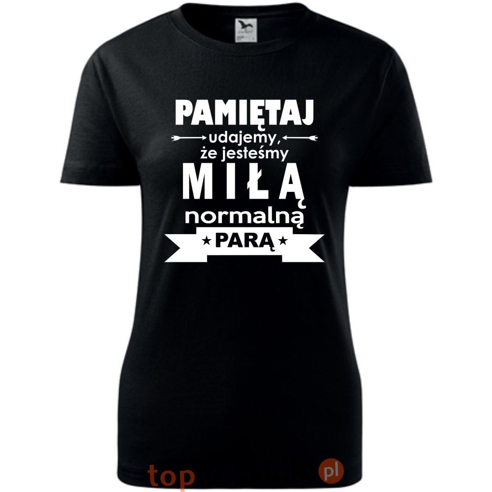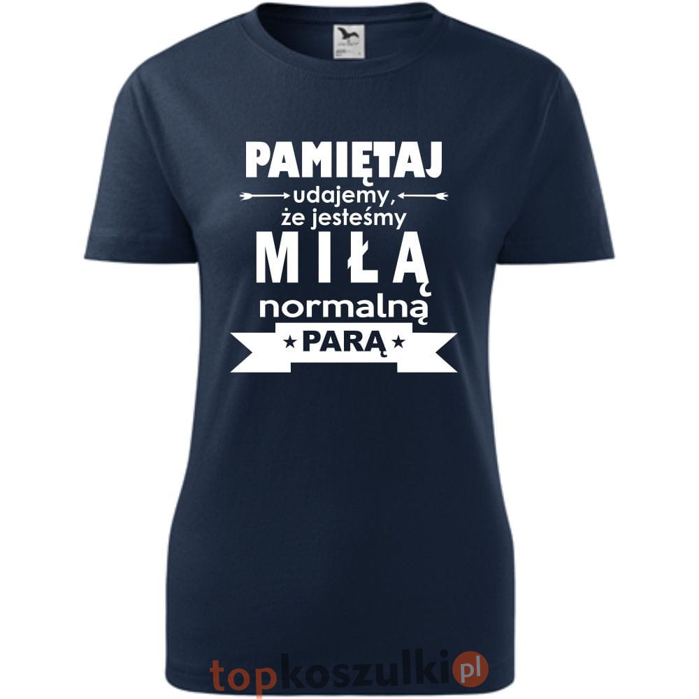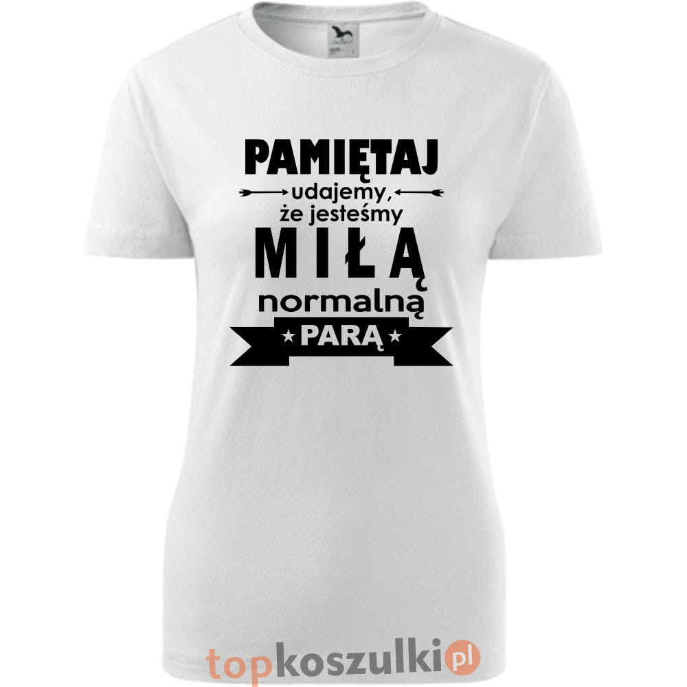 damska koszulka - pamiętaj udajemy, że jesteśmy miłą normalną parą
