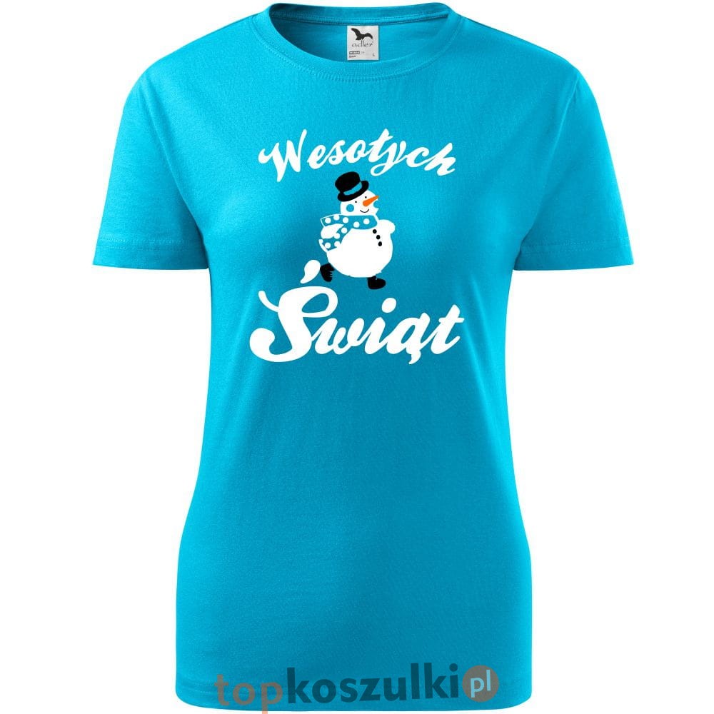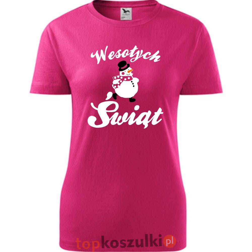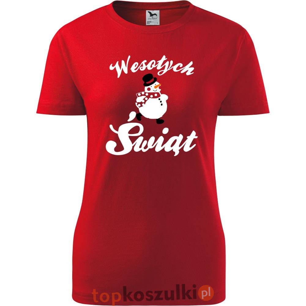 koszulka świąteczna, Wesołych Świąt, koszulka z bałwankiem, prezent świąteczny, Boże Narodzenie, koszulka damska świąteczna, świąteczna odzież, czerwona koszulka świąteczna, pomysł na prezent święta, Mikołajki, zimowa koszulka