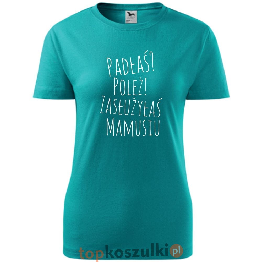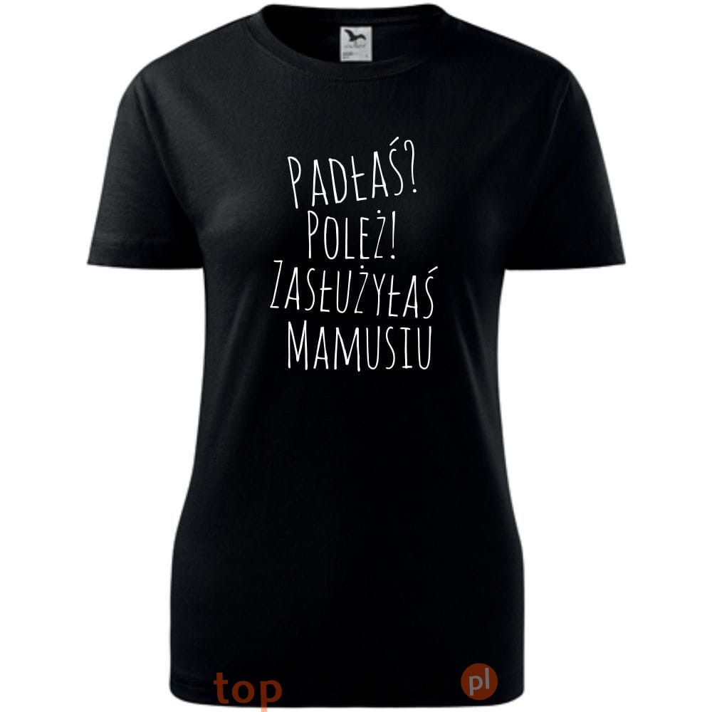 Damska koszulka taliowana - padłaś poleż zasłużyłaś mamusiu