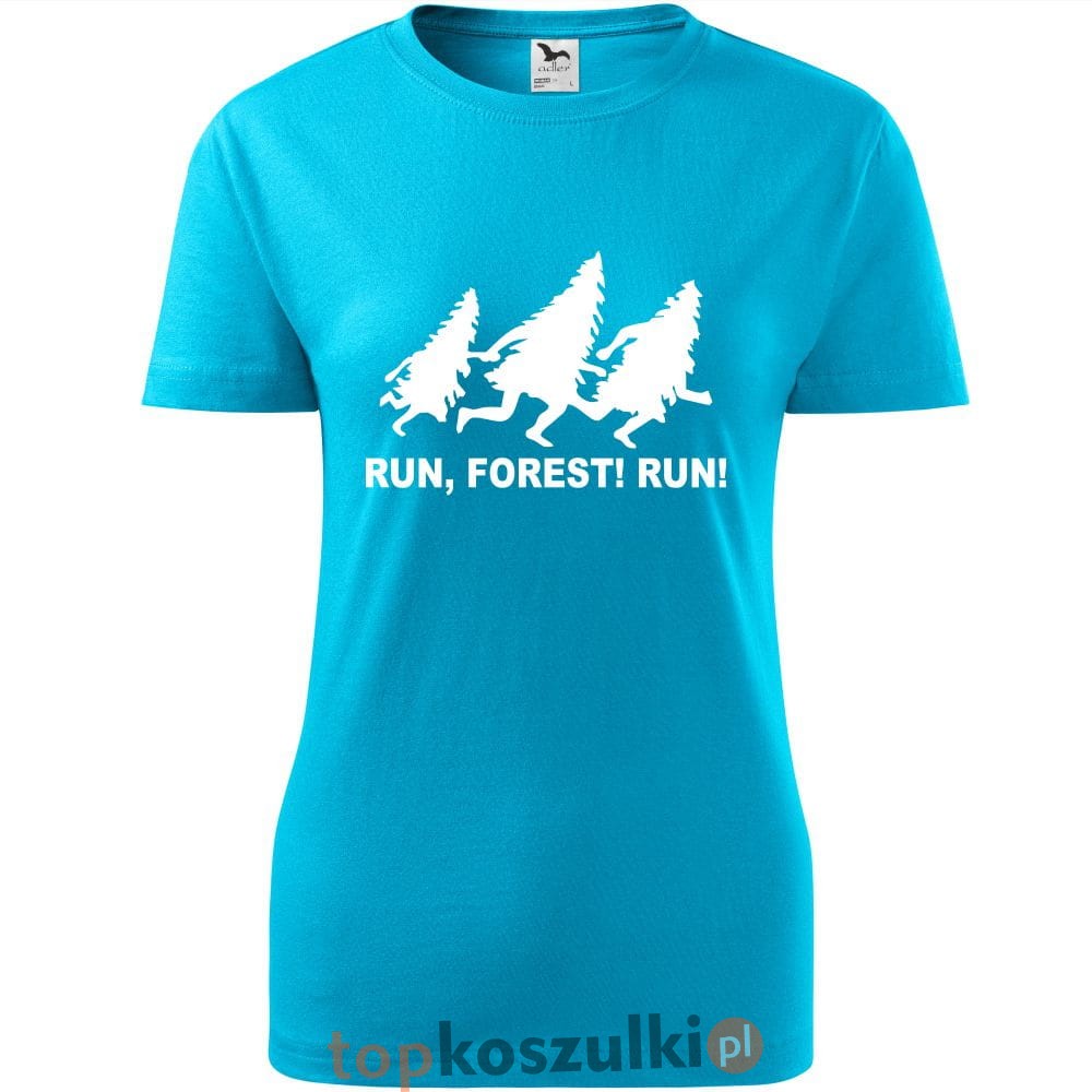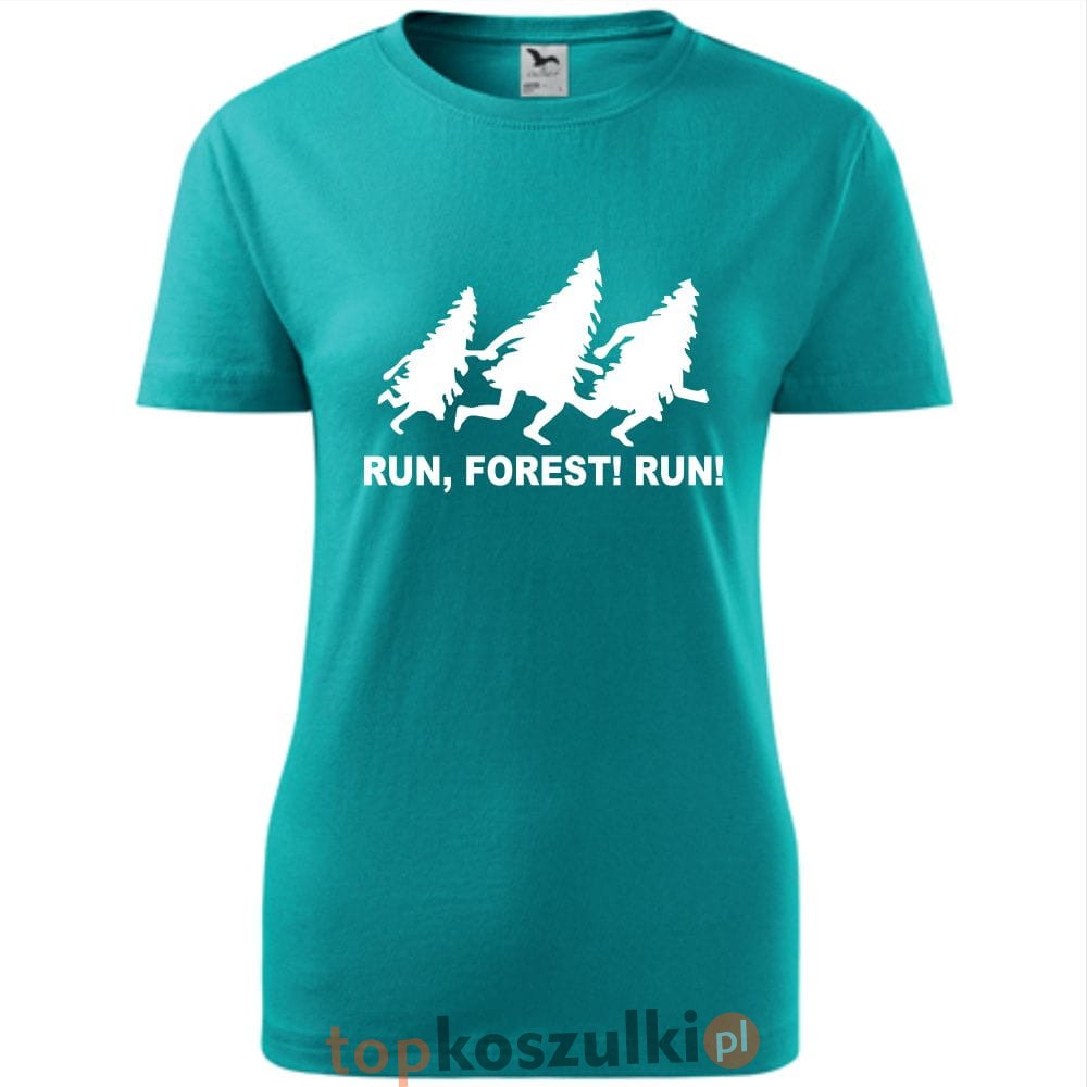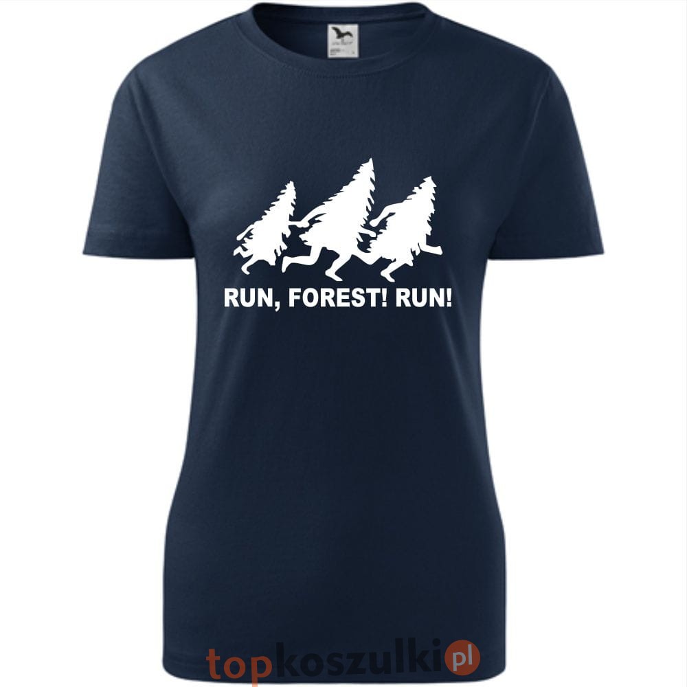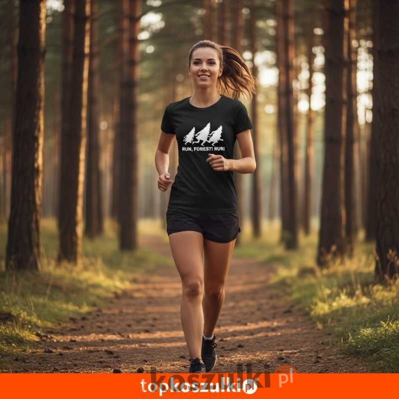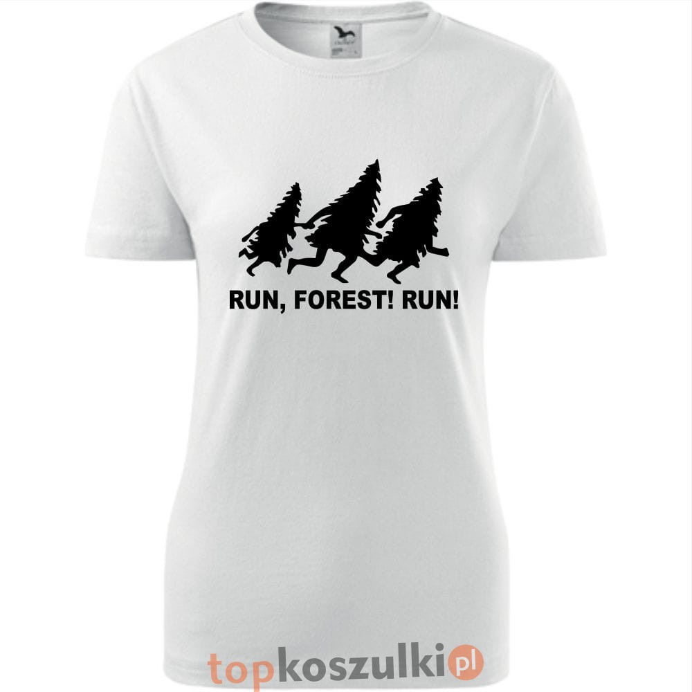 Koszulka damska z nadrukiem: "RUN, FOREST! RUN!"