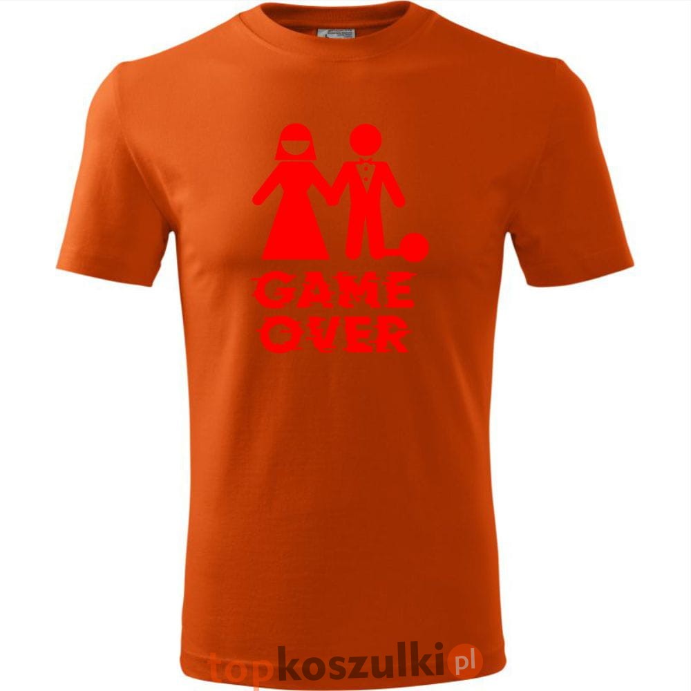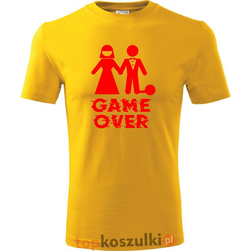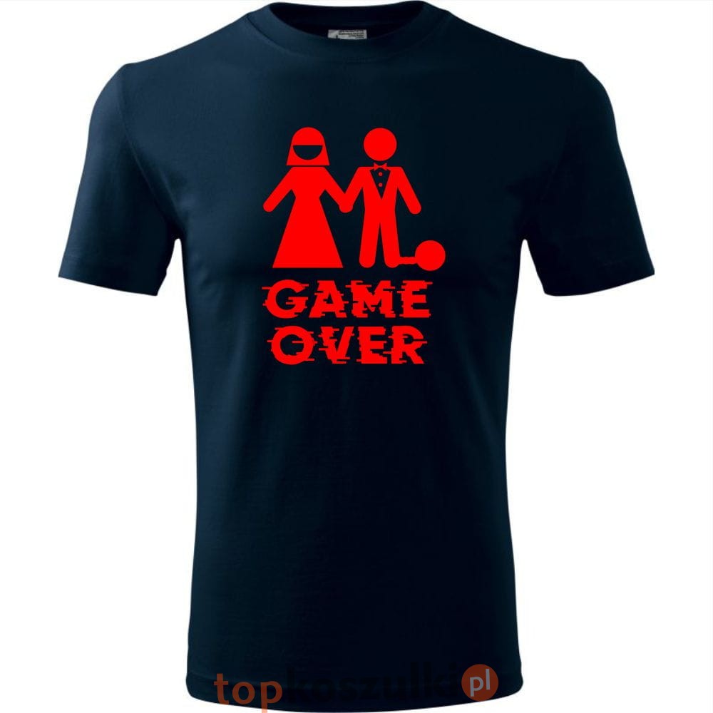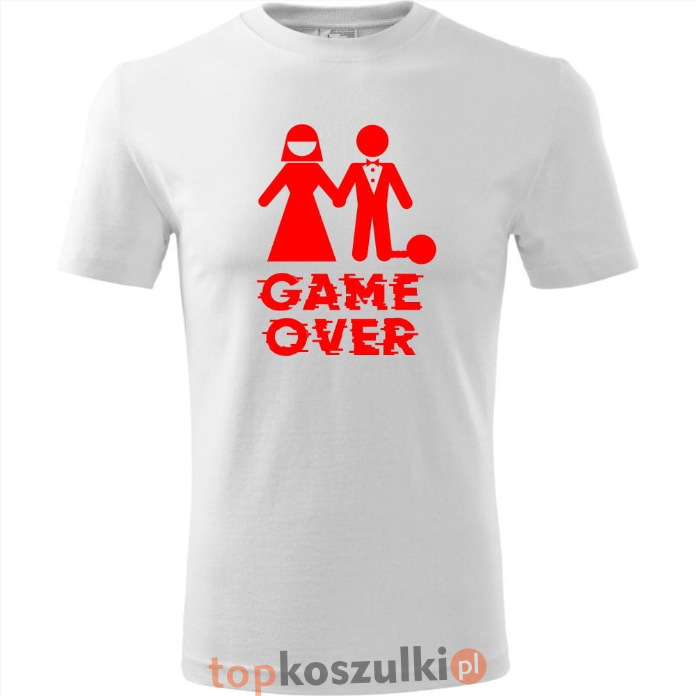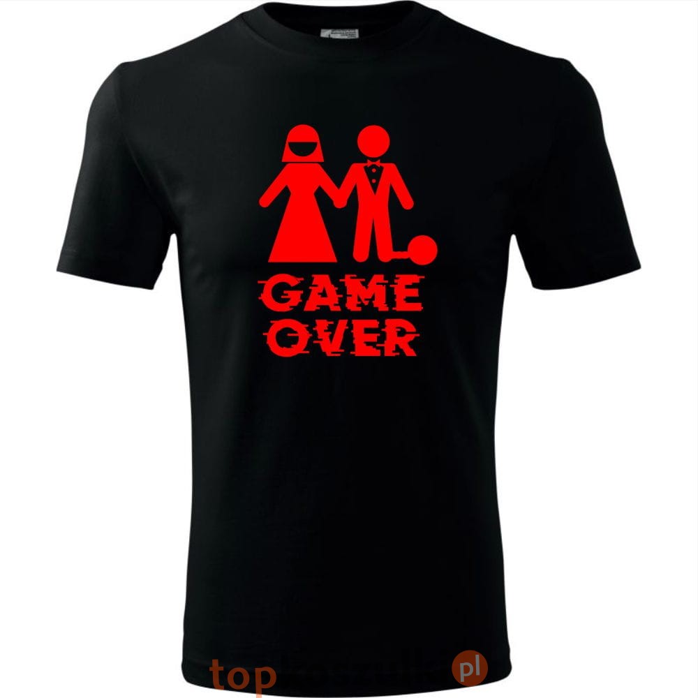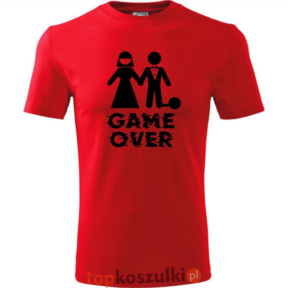 męska koszulka - game over czerwony nadruk na prezent kula u nogi pani młoda